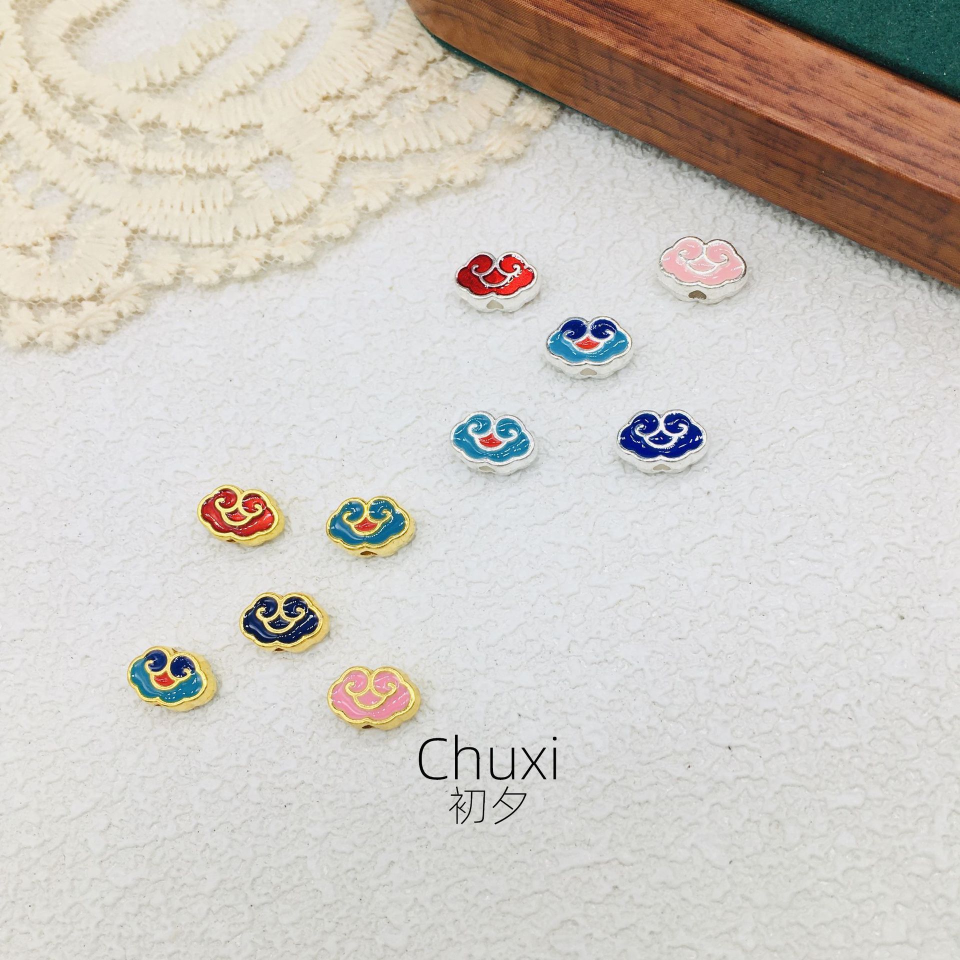 2024 keramik Aloi seng minyak dripping cloisonne Xiangyun diy aksesoris perhiasan bahan antik gelang rambut mahkota jepit rambut aksesoris