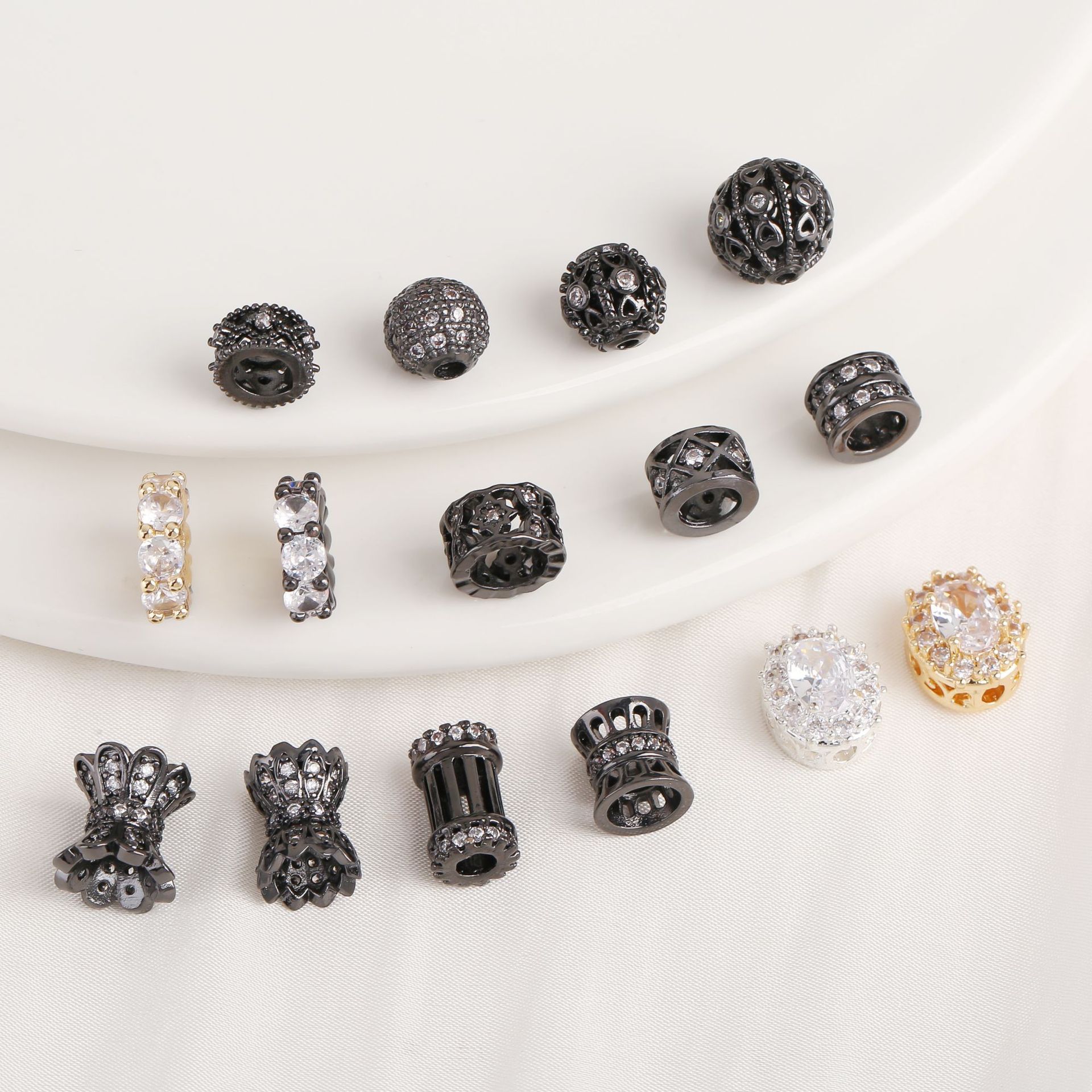 Senapan Pelapisan Tembaga Warna Tinggi Pelapisan Hitam Pelapisan Mini Batu Zirkon Pelapisan Manik-manik Besar Aksesoris Kristal Gelang DIY