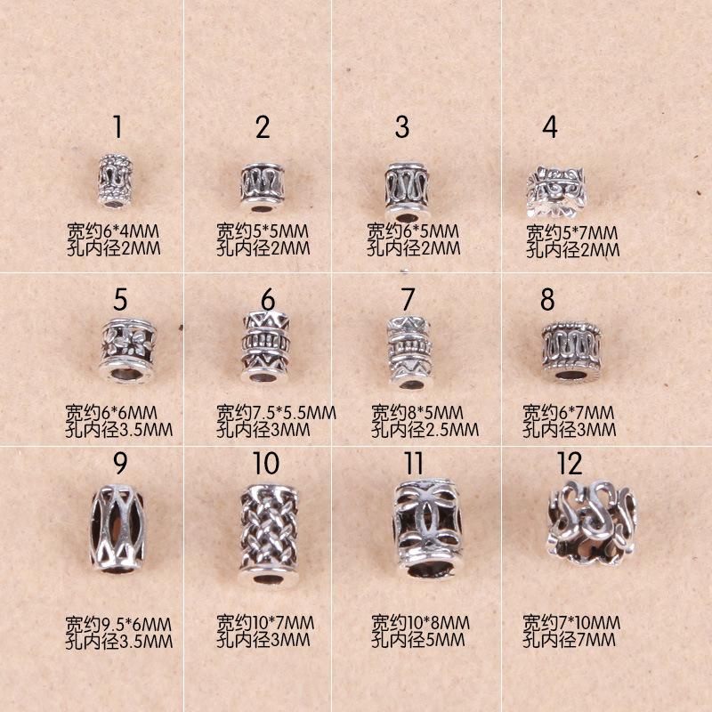 Aksesori campuran perak Xizang manik spacer barel panjang aksesori manik-manik kepang kotor lubang halus Aksesori kepala cincin anggur darah ayam