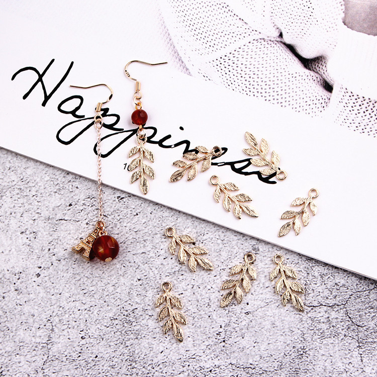Gaya Korea dipersonalisasi anting-anting daun paduan liontin DIY aksesoris perhiasan kc daun kecil emas