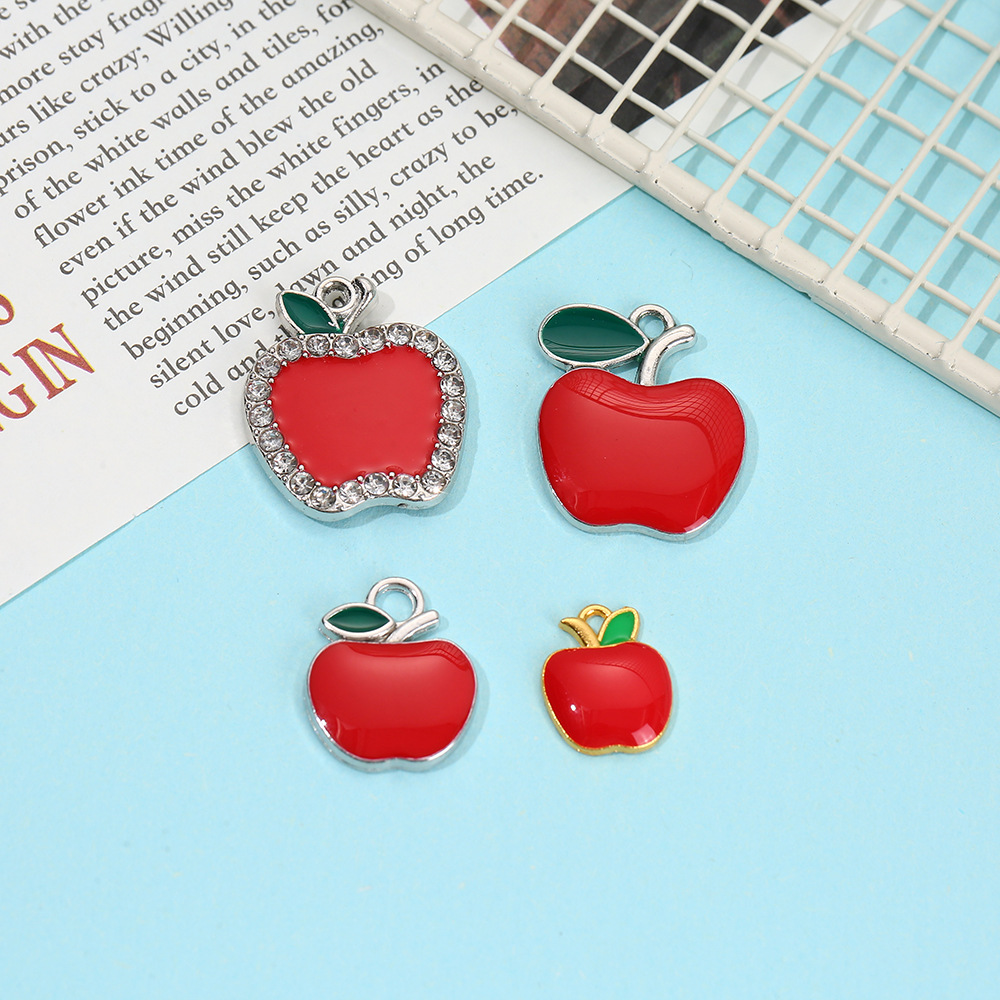 Perhiasan DIY Aksesori Hiasan Gantungan Kunci Paduan Seng Apple Imut Berlian Merah