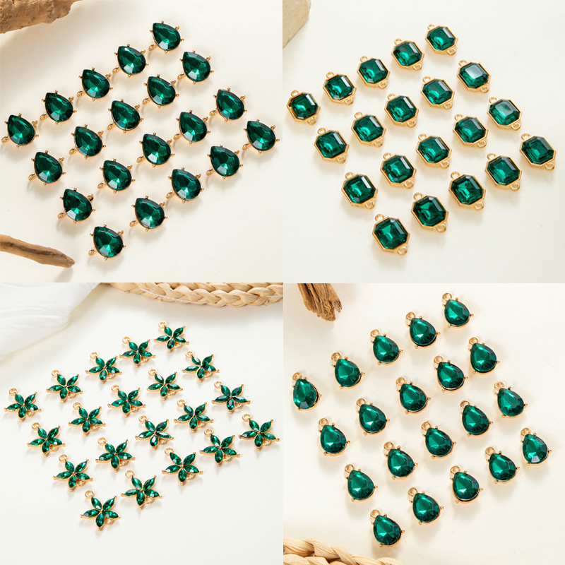 Aksesoris Perhiasan DIY Berlian Hijau Tetesan Air Mata Ganda Retro Lintas Batas Aksesoris Perhiasan Liontin Berlian Paduan