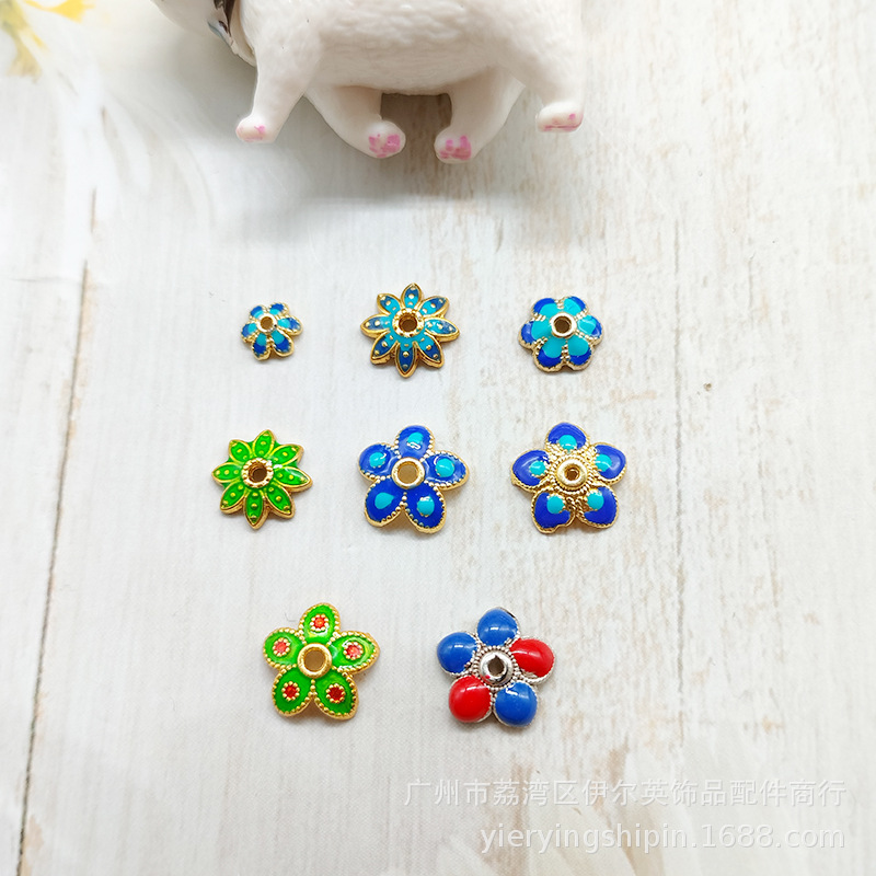 Pemegang bunga minyak tetes arca, tutup kepala bunga cloisonne biru gosong, Aksesori Perhiasan DIY, Kalung Gelang manik-manik