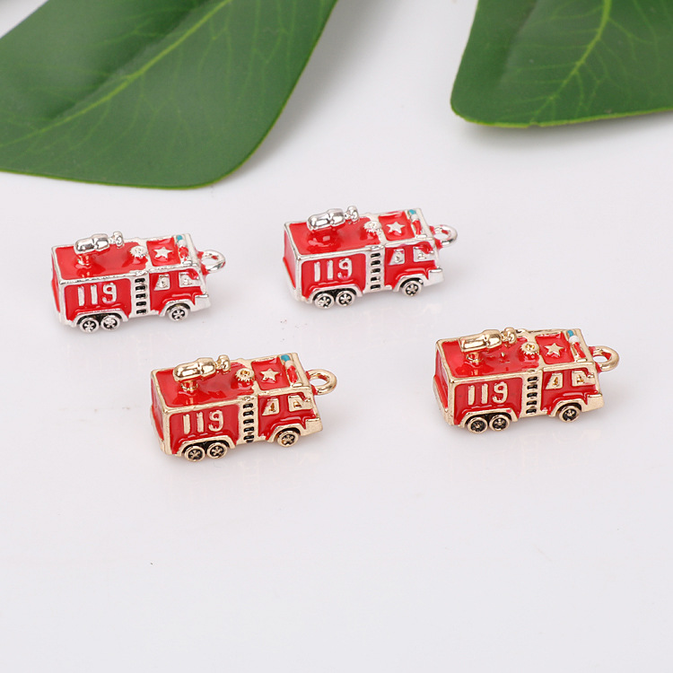 Tiktok diy aksesoris perhiasan paduan dripping kecil liontin simulasi tiga dimensi truk api. Liontin kalung gantungan kunci