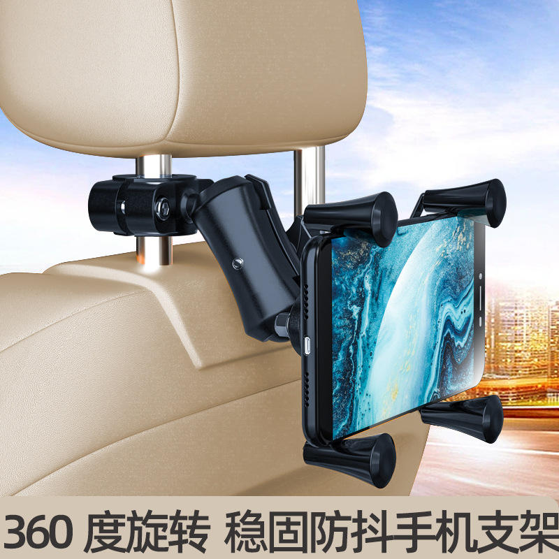 Braket sandaran kepala mobil universal, dudukan telepon genggam berputar 360 ° tabung bulat 9-22mm