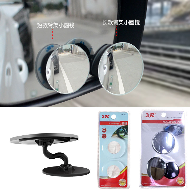 3R-049 kaca spion mobil mulus panjang, kaca spion dengan sudut lebar dapat disesuaikan HD membalikkan cermin bulat kecil cermin titik buta