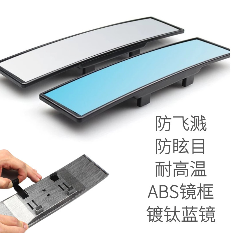 Kaca spion mobil lintas batas, kaca spion mobil dalam ruangan besar, anti percikan anti-silau, cermin biru bulat melengkung