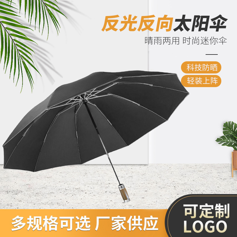 Payung matahari reflektif terbalik otomatis, payung lipat tiga otomatis, payung lipat hadiah, payung iklan, logo cetak