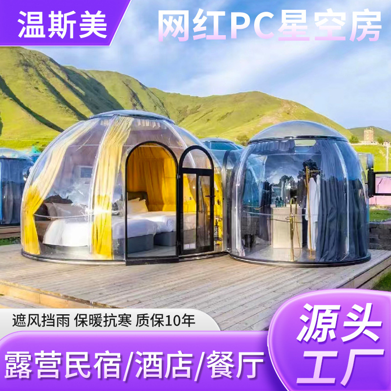 Internet selebriti berkemah B & B satu kamar mandi transparan, satu kamar mandi ruang langit berbintang tahan angin tahan hujan luar ruangan tenda berkemah rumah makanan penutup