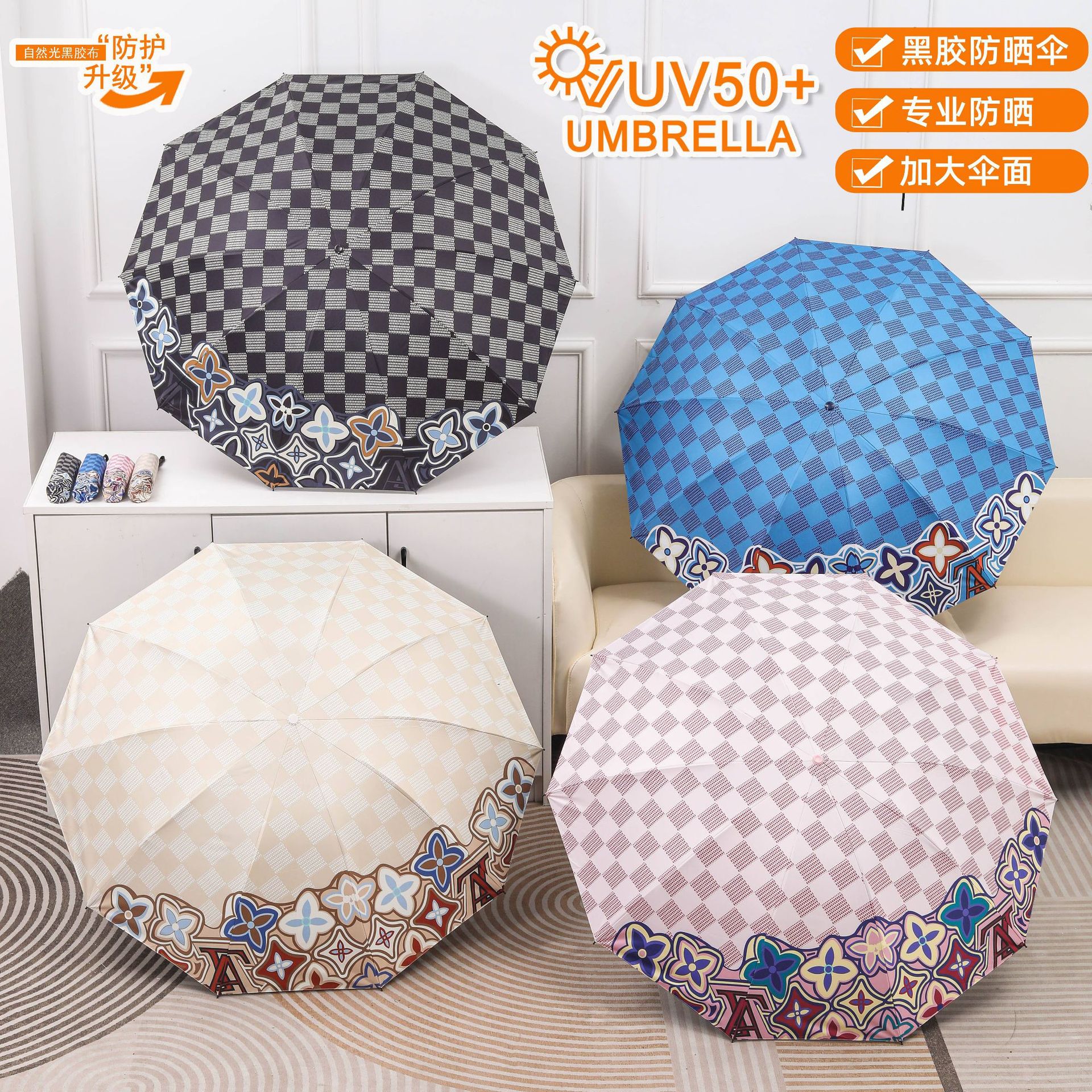 Payung matahari merek trendi kotak-kotak