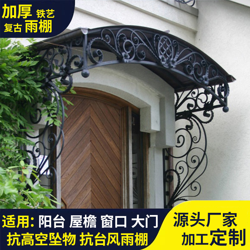 Kanopi besi retro tebal, pintu vila dan jendela, pelindung hujan luar ruangan, penutup hujan penahan matahari, produksi grosir