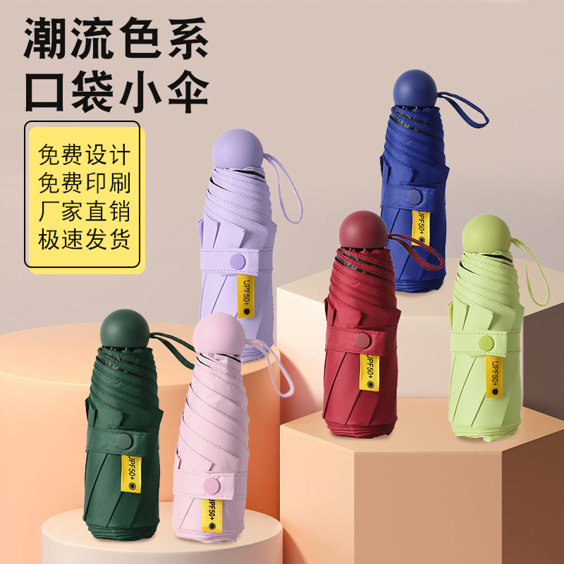 Payung matahari pelindung matahari lipat lima lipatan payung kapsul saku penggunaan ganda hujan lipat kecil logo kustom
