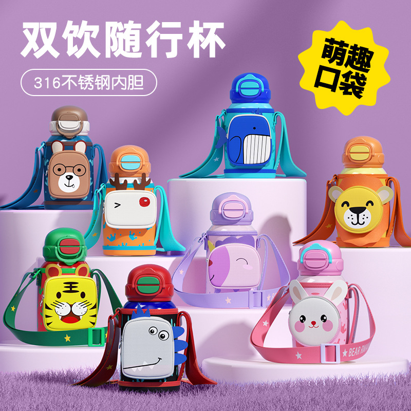 Zheng316 termos anak-anak dengan sedotan pria dan wanita penggunaan ganda ketel siswa sekolah dasar tahan jatuh bayi TK air cangkir wanita
