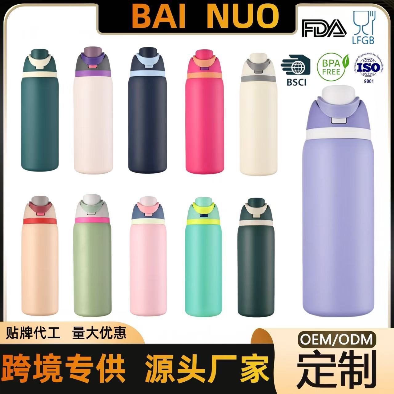 跨境304不锈钢水果杯大容量双饮口保温杯户外便携提手运动水壶批