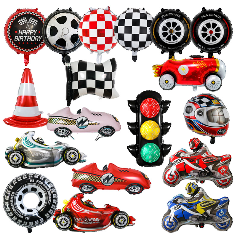 Balon ban baru 18 inci balon film aluminium kotak-kotak hitam dan putih balon dekorasi tema balap grosir
