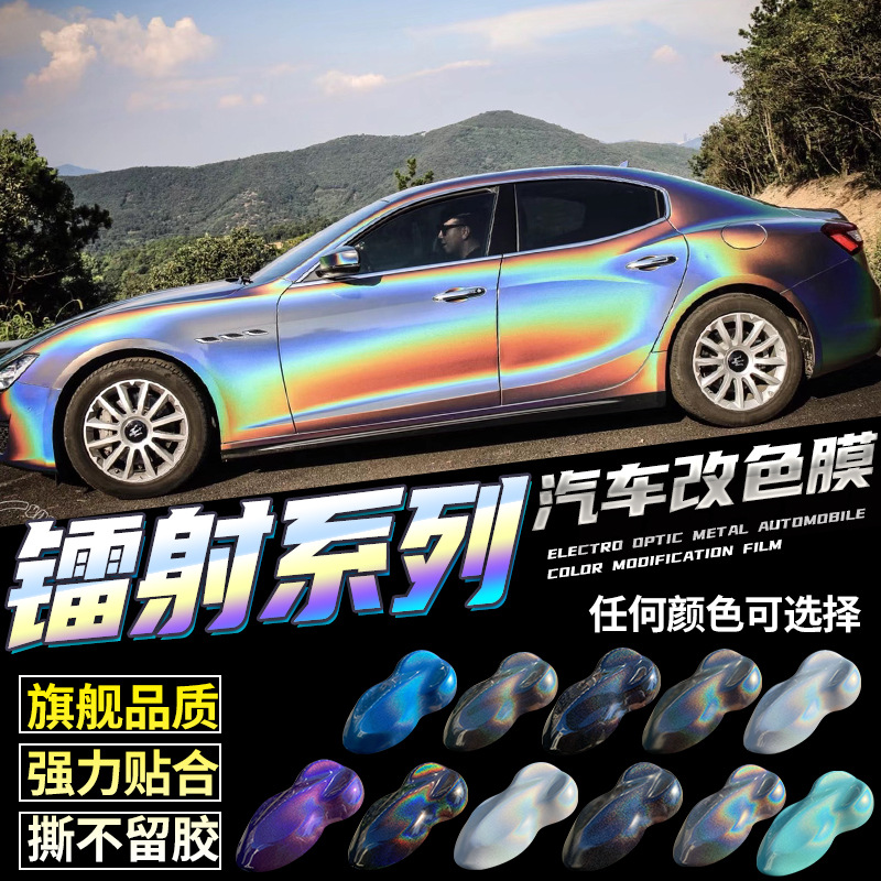 Laser warna-warni bubuk plum es hitam putih film berubah warna mobil pesona ungu biru gradien dua warna film berubah warna abu-abu vulkanik penuh mobil