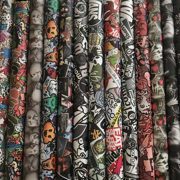 Film kamuflase berubah warna tubuh mobil, stiker modifikasi komputer stiker tengkorak karat Kartun daun grafiti