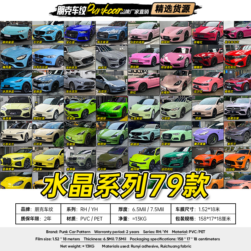 Produsen film perubahan warna mobil seri kristal PVC seluruh piano mobil hitam dan putih film PET pabrik satu klik grosir pengiriman