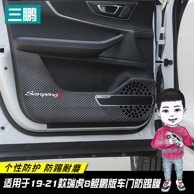 Didedikasikan untuk Chery Tiger 8 xiaodeng stiker mobil pintu film anti-tendangan stiker modifikasi dekoratif anti-tendangan bantalan anti interior