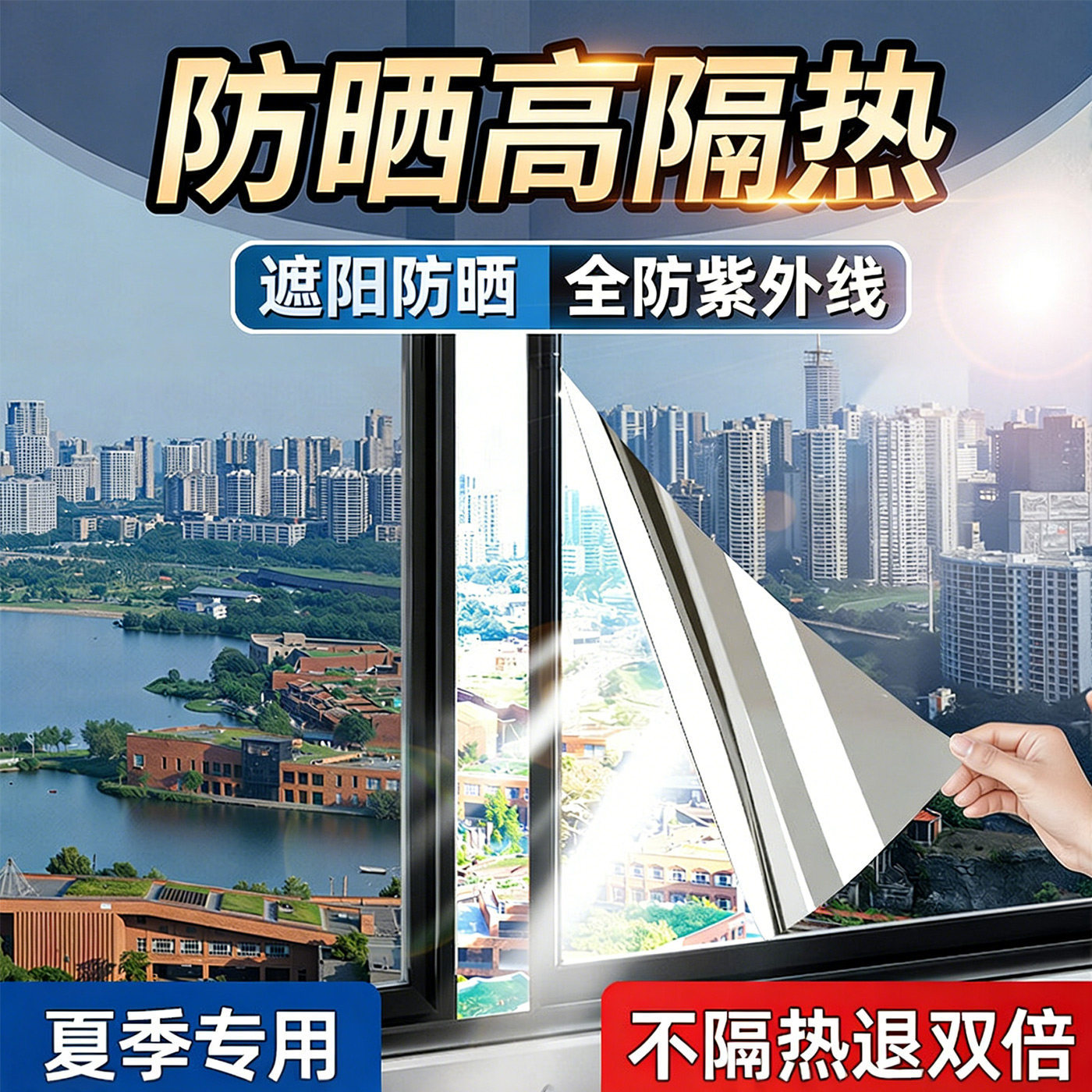 Film insulasi tabir surya, stiker jendela reflektif, satu arah, film kaca penahan matahari, stiker jendela reflektif untuk balkon rumah tangga