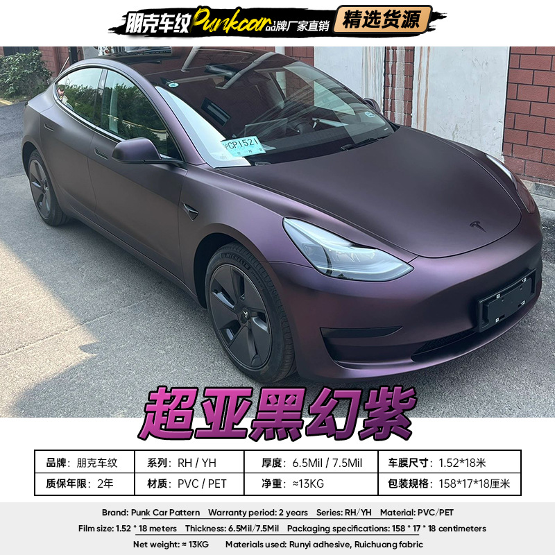 Super Asia hitam ajaib ungu film berubah warna PVC mobil matte hewan peliharaan penuh film mobil pabrik grosir ekspor Luar Negeri Hong Kong