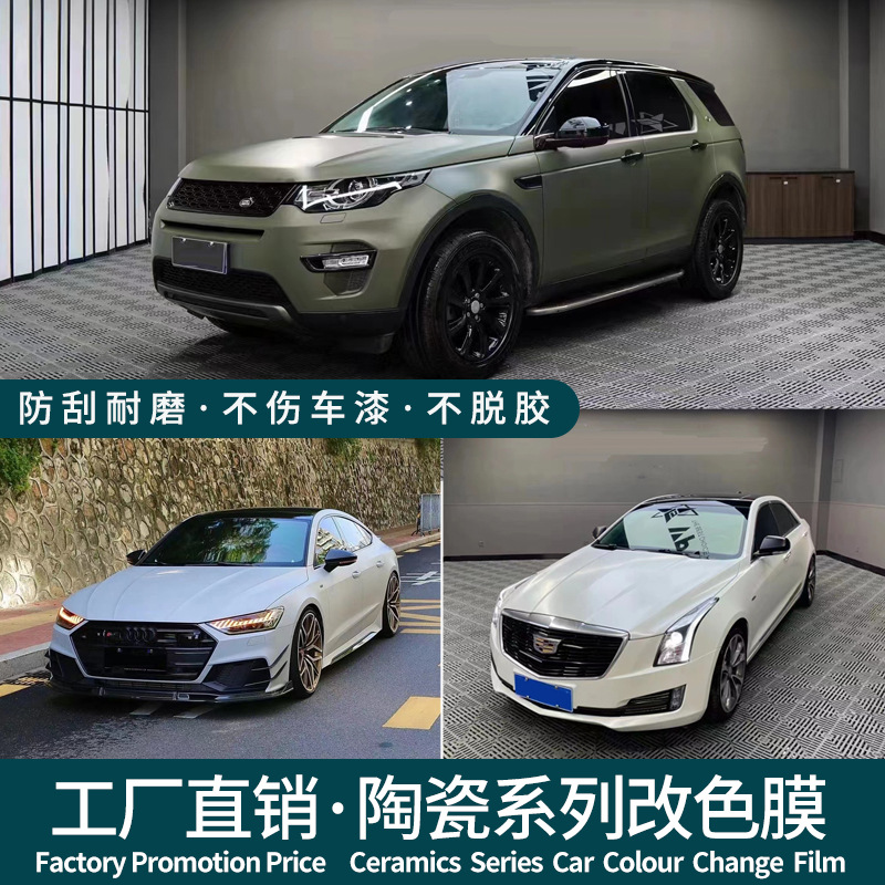 Film modifikasi warna mobil hijau keramik lapis baja sub-permukaan film mobil penuh matte cat film pelindung konstruksi nasional