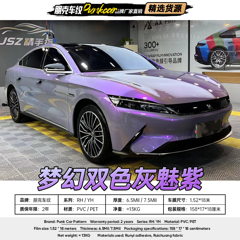 Fantasy film berubah warna ungu dua warna abu-abu menawan PVC film mobil PET film seluruh tubuh pabrik batch dikeluarkan Luar Negeri Hong Kong