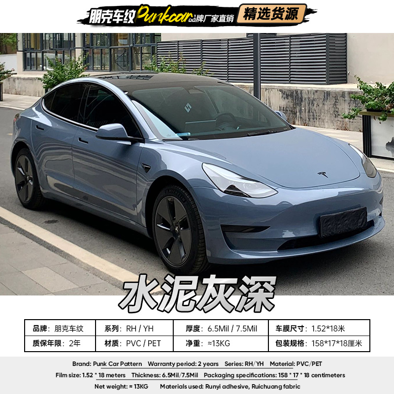 Film kristal berubah warna gelap abu-abu semen seri PVC film mobil penuh PET film Pabrik ekspor grosir Hong Kong