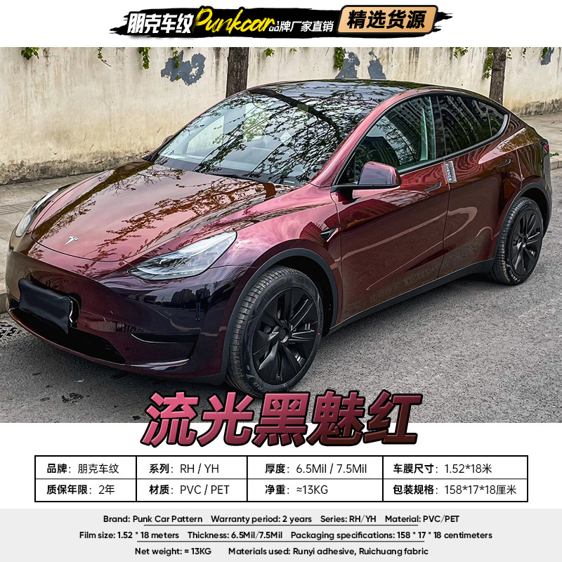 Streamer film berubah warna merah hitam menawan PVC film mobil PET film seluruh tubuh pabrik grosir ekspor Luar Negeri Hong Kong