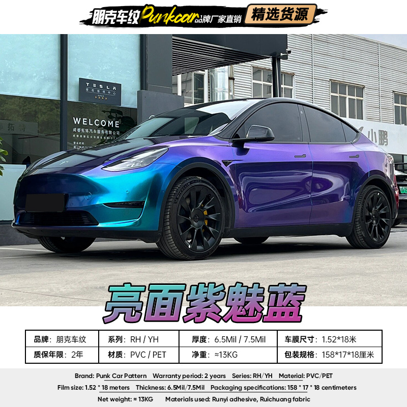 Pesona ungu permukaan terang film berubah warna biru film mobil PVC PET film seluruh tubuh pabrik grosir ekspor Luar Negeri Hong Kong