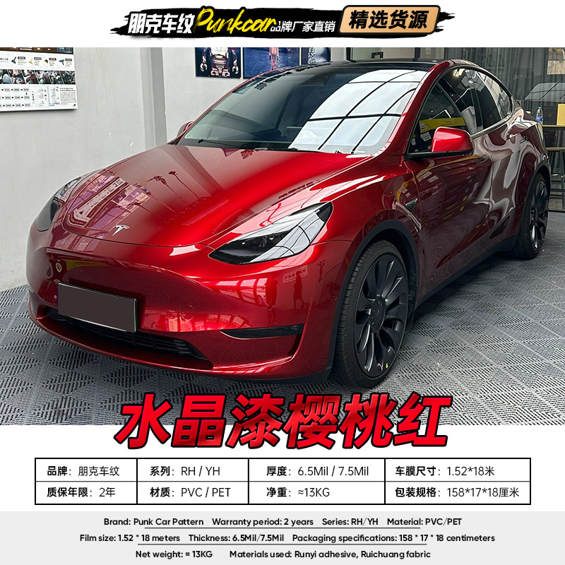 Cat kristal cherry red film berubah warna PVC film mobil PET film seluruh tubuh pabrik grosir ekspor Luar Negeri Hong Kong