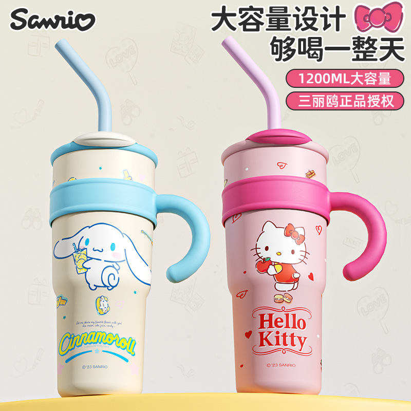 Cangkir Sedotan Sanrio Rumah Tangga Cangkir Termos Kartun Anti Jatuh Cangkir Es Kapasitas Besar