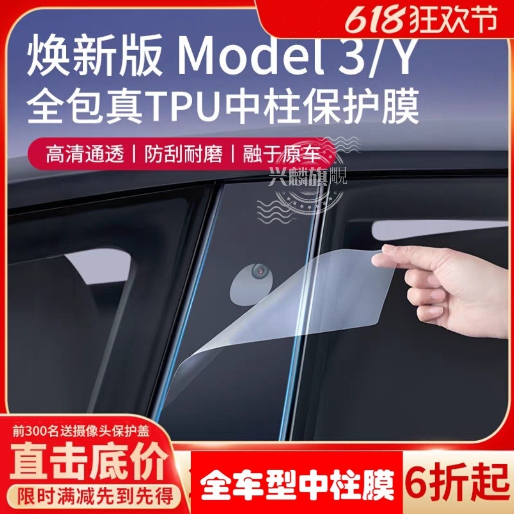 Cocok untuk Tesla Model3Y Tampilan Versi Baru 3Y Kaca Mobil Kolom AB Tpu Film Pelindung Anti Gores dan Tahan Aus