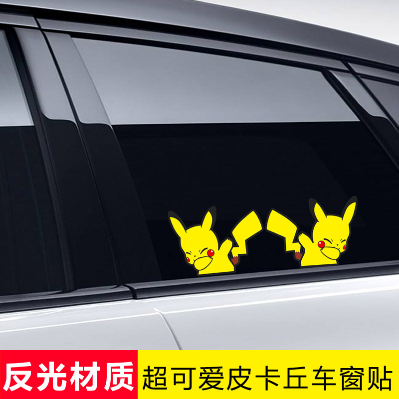 Kook stiker mobil Pikachu, stiker kaca jendela reflektif kartun TikTok, stiker mobil sama