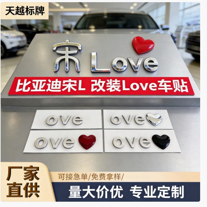 BYD Song L Qin LOVE Stiker Teks Kreatif Cinta A4L Q5L Stiker Stiker Ekor Mobil Dekorasi Perubahan Huruf Bahasa Inggris