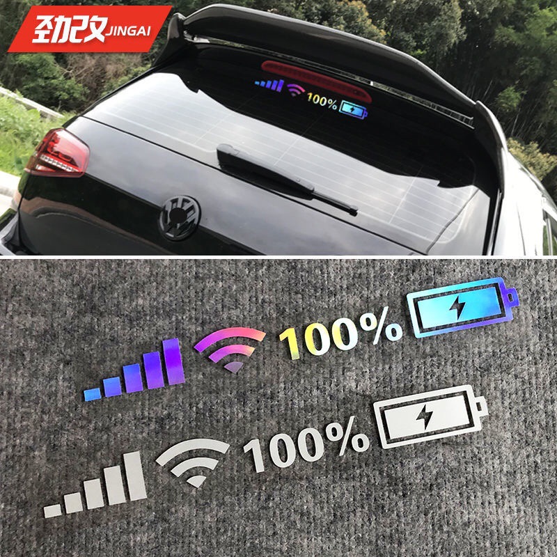 Stiker reflektif kaca depan mobil, stiker reflektif dekoratif pribadi untuk mobil dan mobil, stiker modifikasi logo ponsel kekuatan WiFi sinyal 5G