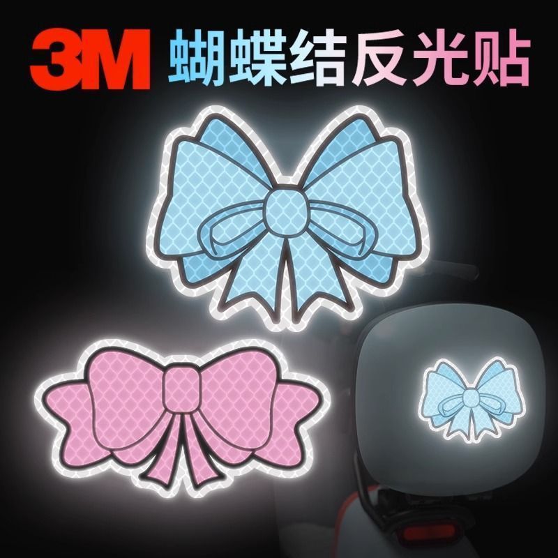 Stiker Reflektif Kartun 3M Berlian Stiker Goresan Tubuh Mobil Stiker Peringatan Anti Tabrakan Helm Mobil Listrik Pita Kupu-Kupu