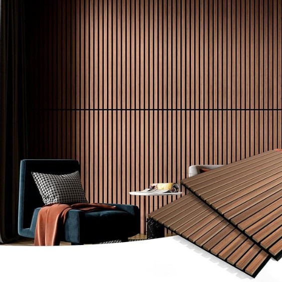 Dekorasi Dinding Ruang Teater MDF Dinding Latar Belakang Ruang Tamu Papan Isolasi Suara Serat Polyester Papan Isolasi Suara Strip Kayu Papan Penyerap Suara