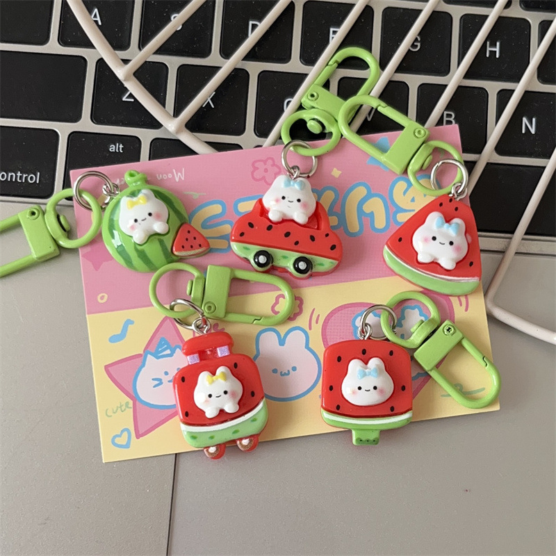 创意卡通可爱西瓜小兔雪糕趣味钥匙扣萌趣包挂件情侣闺蜜礼物配饰