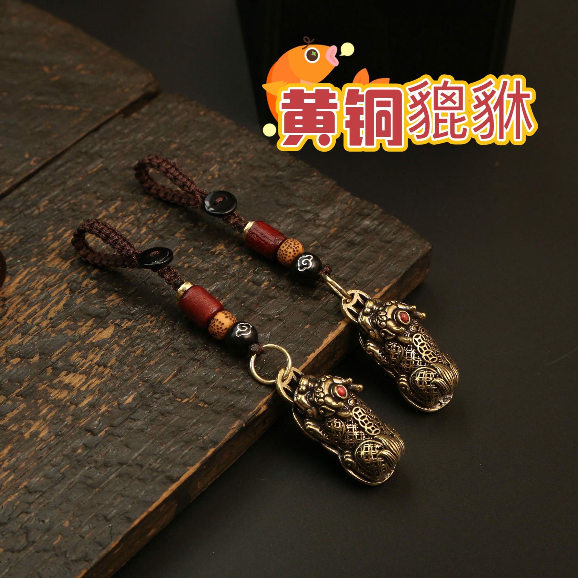 Liontin Kalung Pixiu Kuningan Murni Gantungan Kunci Mobil Nilai Wajah Tinggi Model Trendi Kepribadian Pria Wanita Aksesori Retro