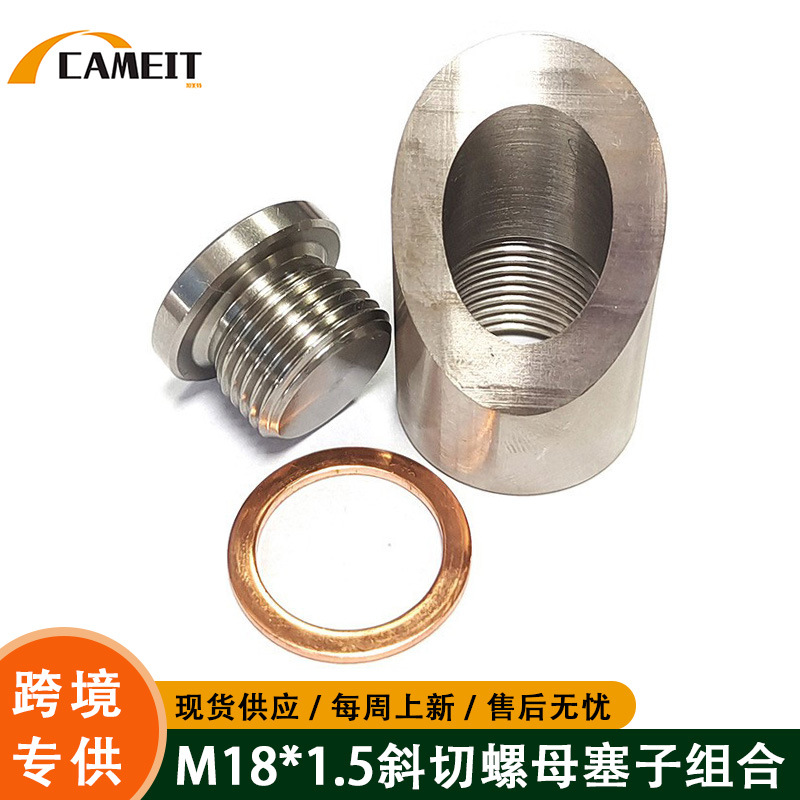 Produsen suku cadang otomotif, sekrup pipa knalpot, mur besi dengan sudut miring 45 derajat, penutup dengan ring M18X1.5, kepala las