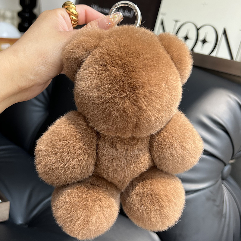 Tas Gadis Beruang Coklat Kecil Bulu Kelinci Rex Gantungan Kunci Gantungan Gantungan Mainan Boneka Mewah Mobil Lucu Hiasan Buku Hadiah