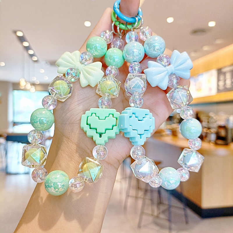Gantungan kunci rantai manik-manik hati simpul kupu-kupu model baru gantungan kunci mobil tas lucu diy buatan tangan