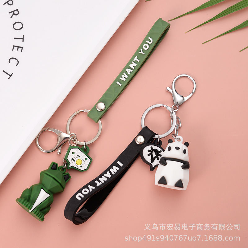 Ornamen tas liontin hewan, hiasan gantung kunci mobil panda kartun kreatif potongan geometris hadiah kecil