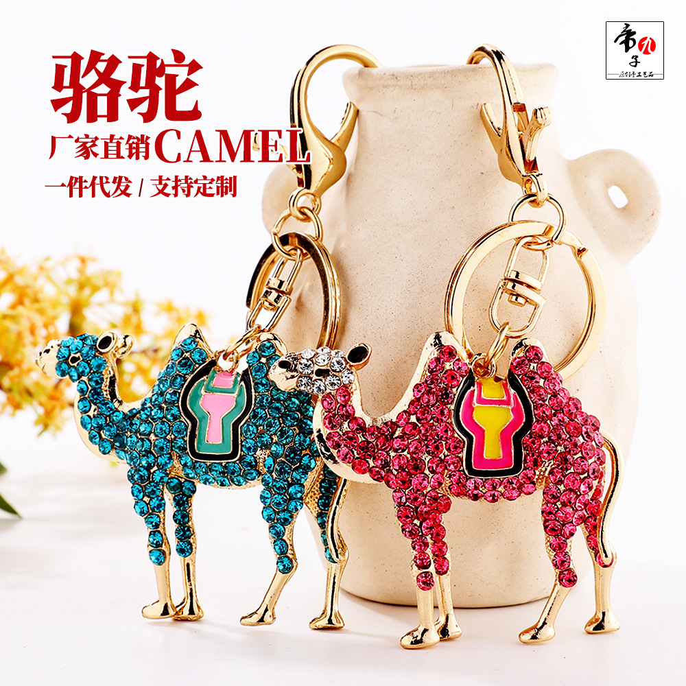 Emperor Jiuzi gantungan kunci mobil, gantungan kunci mobil logam paduan berlian tanam Kreatif binatang lucu kartun unta hadiah