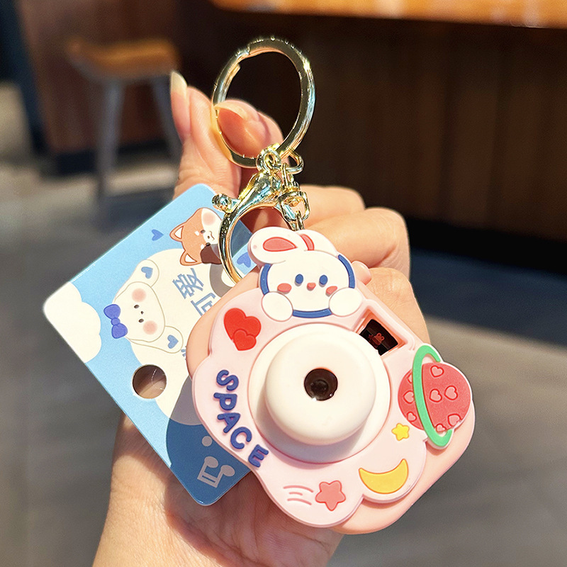 Ornamen kamera proyeksi langit berbintang, gantungan kunci Kamera silikon kelinci pasangan liontin tas mobil kecil
