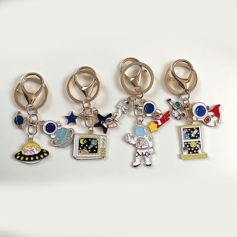 Kartun Lucu Astros Planet Gantungan Kunci Astronot Ornamen Roket Bintang Gantungan Kunci Mobil Tas Gantungan
