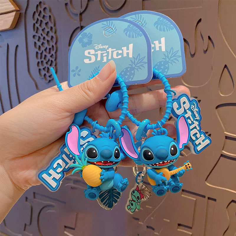 正版卡通史迪仔菠萝音乐钥匙扣可爱包包挂饰汽车钥匙链小礼品批发