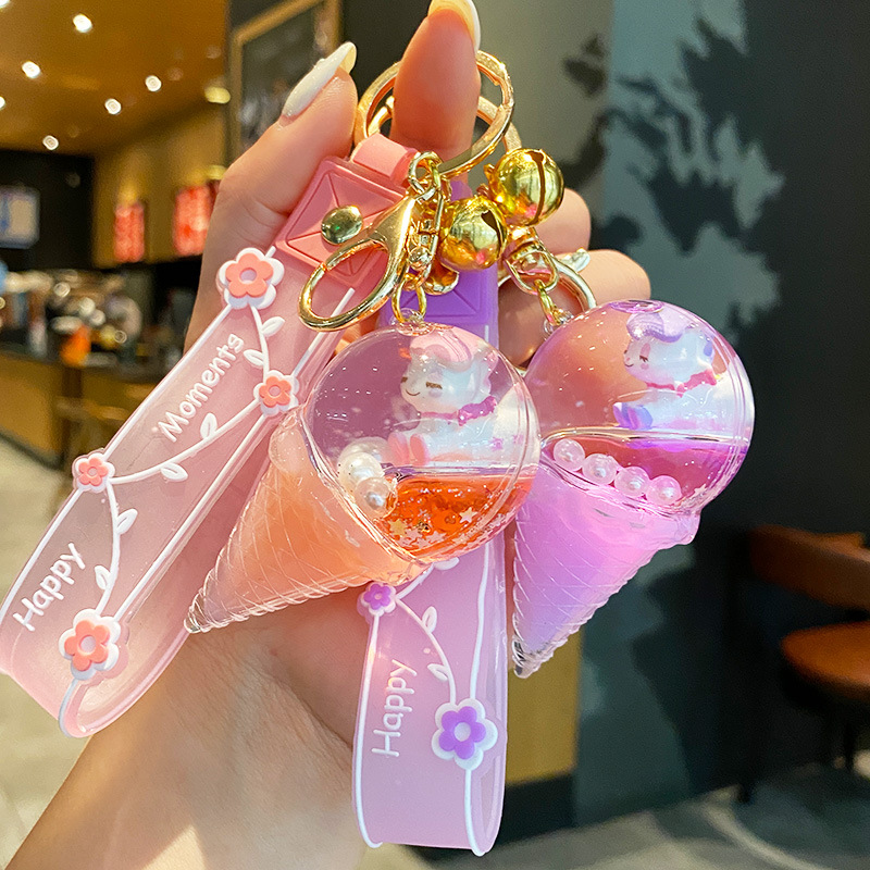 Gantungan kunci es krim unicorn, gantungan kunci mobil ornamen tas sekolah anak perempuan lucu sangat indah