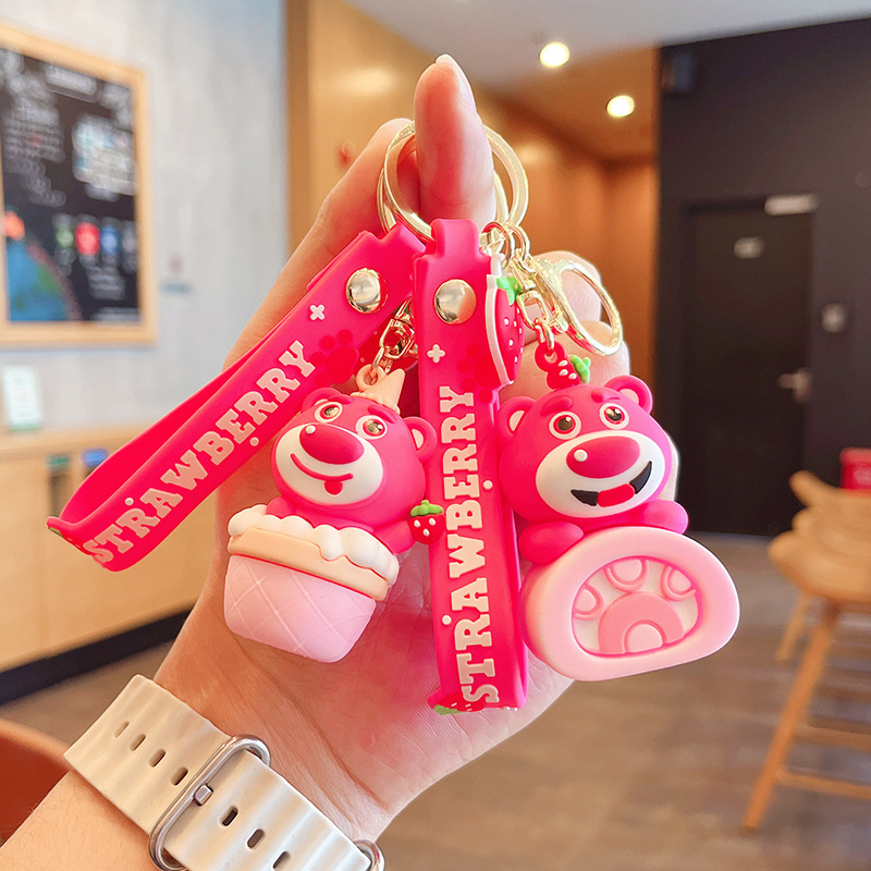 Makanan Penutup Kreatif Beruang Strawberry Gantungan Kunci Boneka Tas Boneka Gantungan Cantik Gantungan Kunci Mobil Hadiah Grosir Kecil